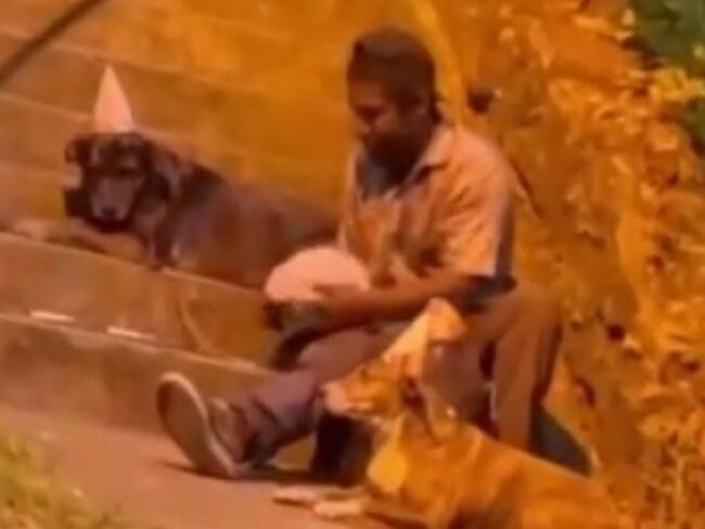 Con gorros, velas y ponqué en mano, José Luís Matos, le cantó el cumpleaños a sus mascotas en Bucaramanga.