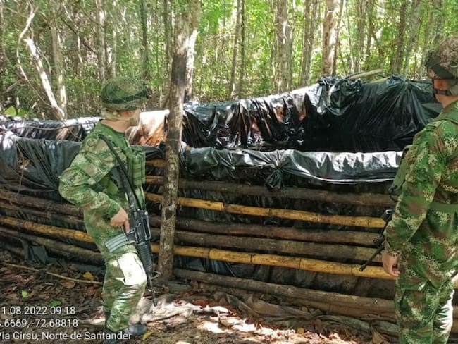 Esta refinería ilegal estaba compuesta por dos piscinas artesanales encargadas de destilar el crudo hurtado al oleoducto Caño Limón Coveñas.