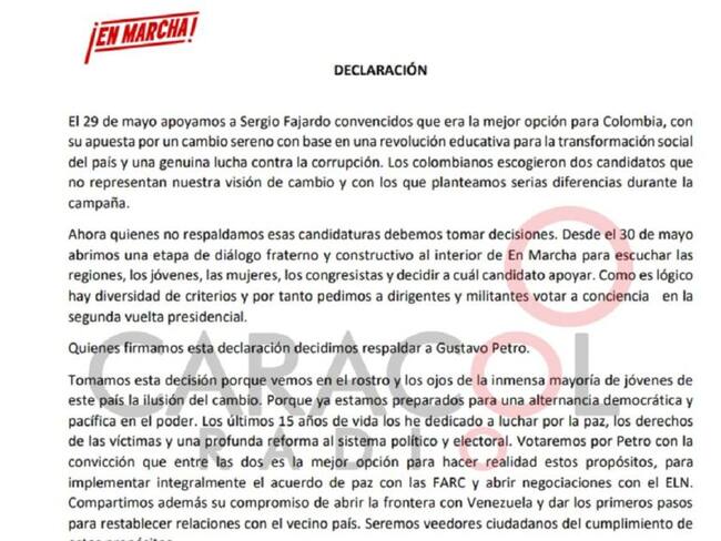 Juan Fernando Cristo anuncia su apoyo a la candidatura de Gustavo Petro.
