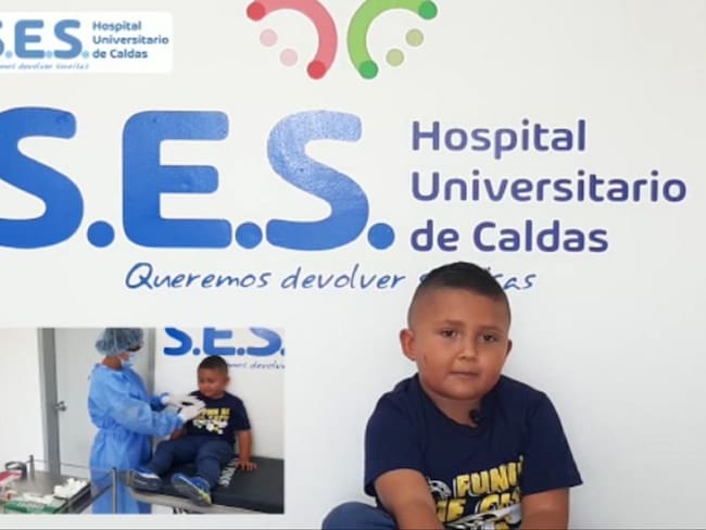 Dijo Jerónimo Ramírez que con solo tiene 6 años y es el vacunado 50.000 en el SES Hospital de Caldas.