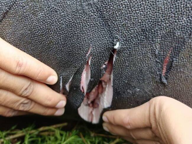 La Policía ambiental rechazó el hecho y dijo que tratan de individualizar a los pescadores que habrían participado en la agresión contra esta especie.