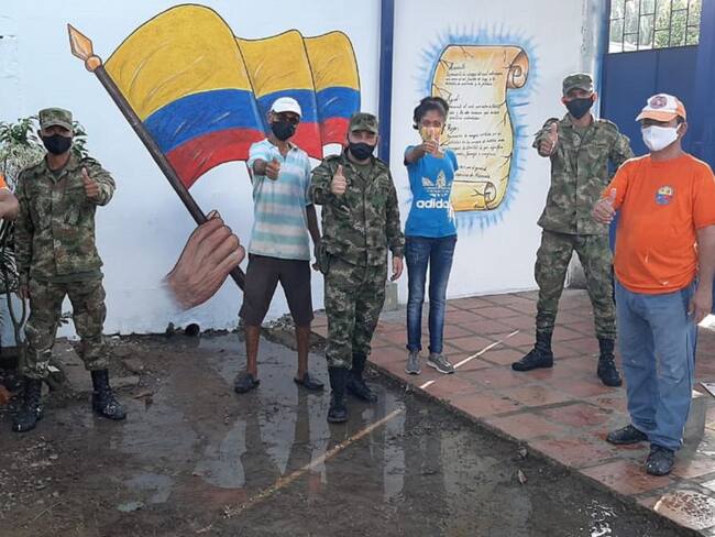 El Ejército Nacional y voluntarios de la Defensa Civil lideran jornadas de limpieza en colegios del sur del Magdalena.