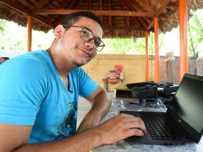 El estudiante reside en el municipio de El Piñón y fue el primer beneficiario de 400 equipos que entregará la Universidad del Magdalena.