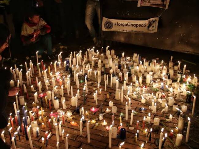 Hinchas de varios equipos del torneo colombiano se dieron cita en un acto para solidarizarse con la hinchada de Chapecoense y recordar a sus jugadores.