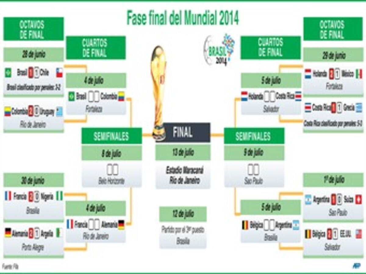 Alemania, Argentina, Bélgica, Brasil, Colombia, Costa Rica, Francia y Holanda buscarán la corona del fútbol.