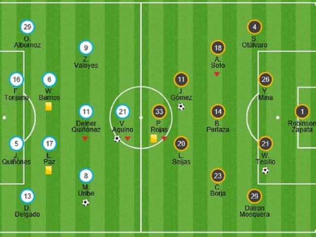 Jonathan Gómez y William Tesillo marcaron los goles en el 2-2 ante el Tolima.