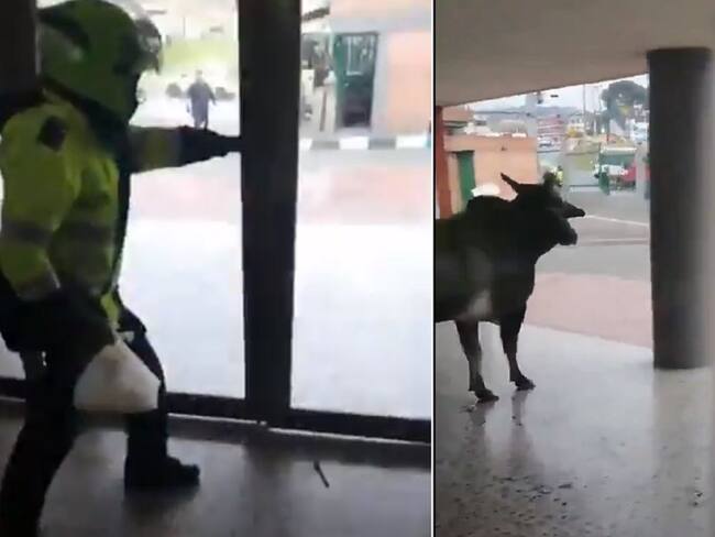 (VIDEO) El susto que se llevaron en la Policía de Usme al ver a un toro