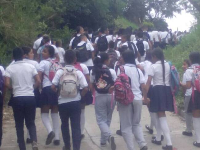 A esta hora cerca de 400 estudiantes de la institución Unificada de Irra protestan frente a la institución por que la secretaria de educación departamental no ha nombrado rector.