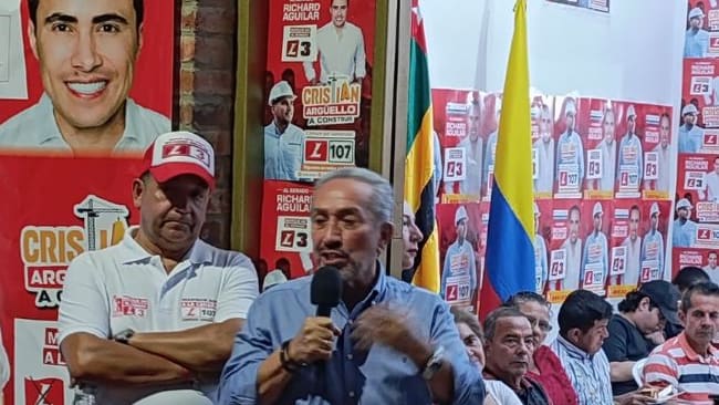 El exgobernador de Santander estuvo en San Gil pidiendo apoyo para Richard Aguilar, candidato al senado.