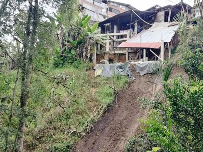 El desprendimiento de tierra tiene afectadas tiene en riesgo a varias viviendas y está afectando la vía nacional hacia Riosucio, Caldas.