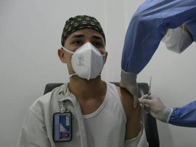 José Joaquín Castaño, médico intensivista de la UCI del Hospital Universitario San Jorge de Pereira fue el primero en ser vacunado.