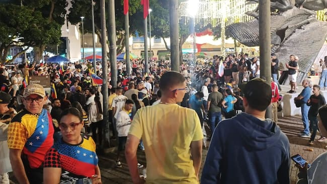 En la plaza de Bolívar de Pereira se concentró la colonia venezolana celebrando la captura de Maduro