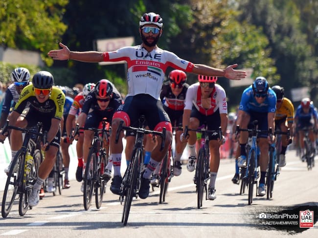 Michal Kwiatowski cruzó la meta en el primer puesto abrazado junto a Richard Carapaz; Miguel Ángel López se mantiene en el tercer lugar.