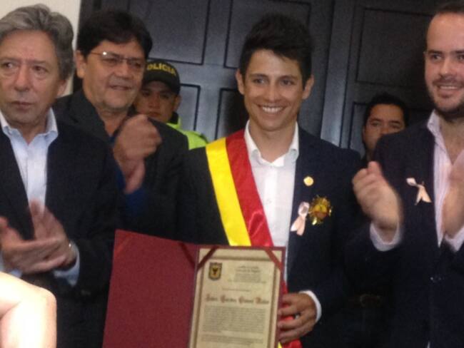 El ciclista bogotano recibió la Cruz de Plata en reconocimiento por sus logros deportivos.