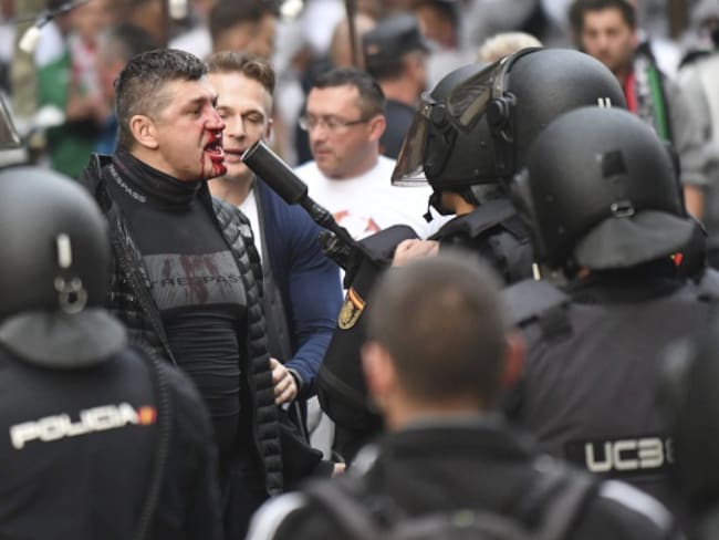 Previo al juego ante el Real Madrid por la Champions la policía española se enfrentó a los aficionados polacos .