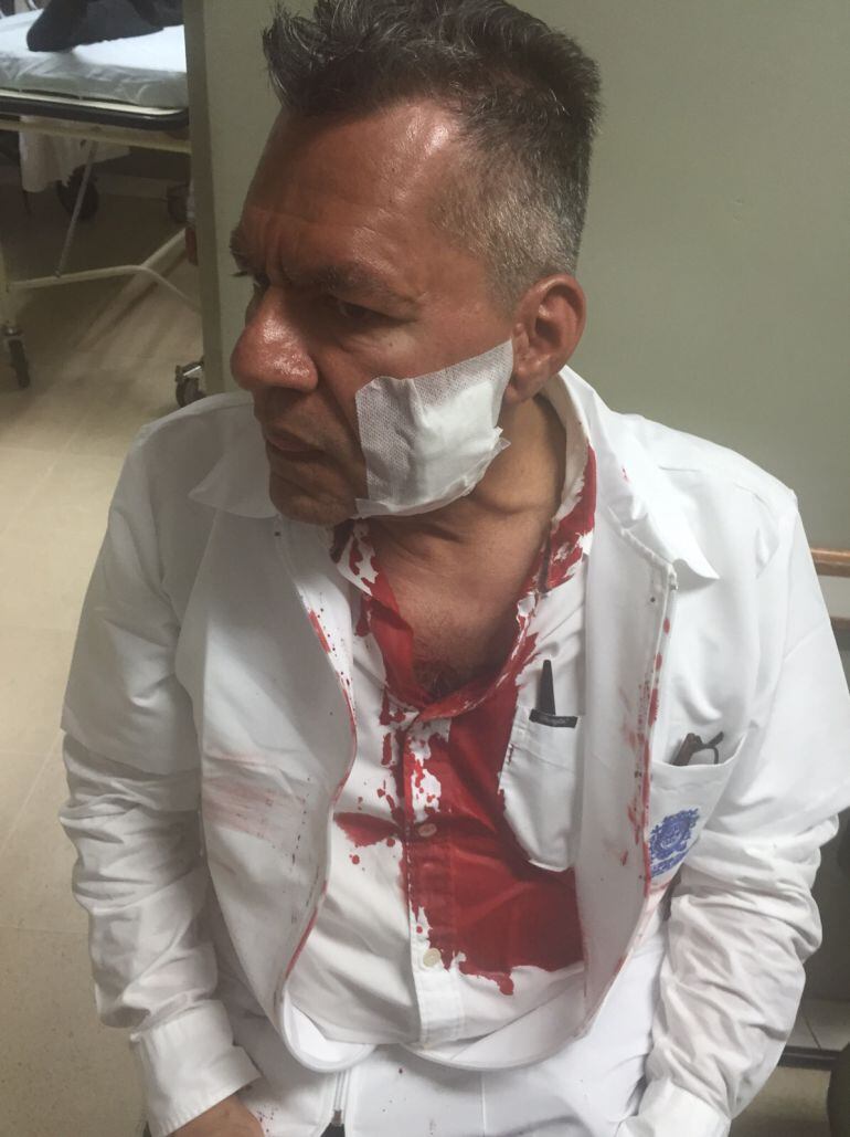 Uno de los casos más graves es el del médico Gerente de Contratación de la Ips Universitaria, Juan Edgar Marín, quien fue golpeado por una pipeta de gases lacrimógenos en la cara, y debió ser atendido por cirujano plástico y permanece en observación para ser evaluado por un otorrino.