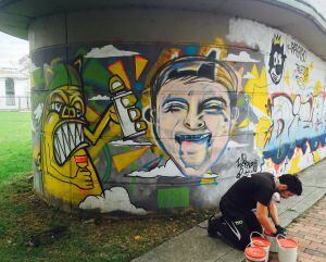 Con tarros de pintura, brochas, pinceles y aerosoles, los artistas callejeros pintaron y repintaron el puente vehicular de la calle 116 con Boyacá como homenaje al joven Diego Felipe que se convirtió en el símbolo de cientos de artistas urbanos.