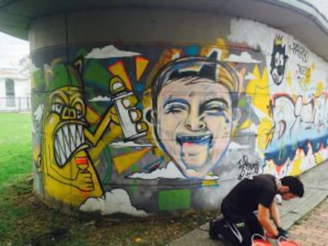 "Hoy fueron convocados alrededor de 120 grafiteros, la idea es terminar de decorar el puente con obras de ellos, es un acto conmemorativo al derecho a la vida, al derecho al arte que no es un delito", manifestó Gustavo Trejos, padrastro de Diego Felipe Becerra.