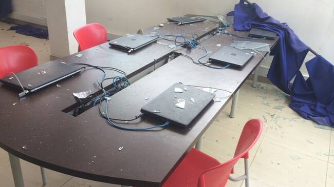 La asonada dejó daños en las sedes de la Alcaldía y la estación de Policía y una corporación bancaria.(Caracol Radio Barranquilla)