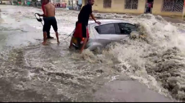 Voluntarios rescatan automóvil arrastrado por arroyo en Barranquilla