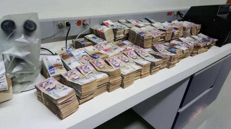 Según informes de inteligencia, la gruesa suma de dinero iba a ser utilizada en la compra de un cargamento de cocaína.