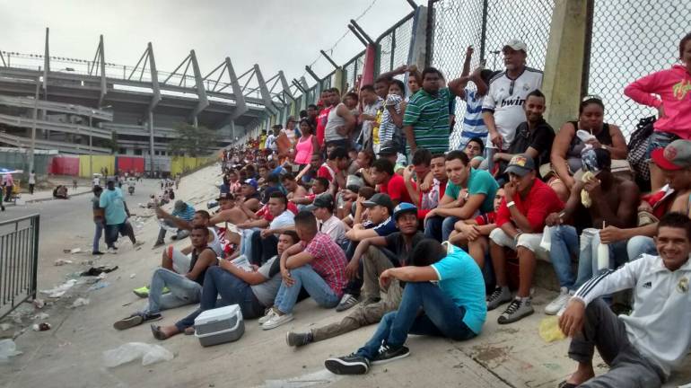 En el parqueadero del estadio metropolitano Roberto Meléndez, los aficionados realizan largas filas, para conseguir boletas para el partido Colombia vs Perú el próximo 8 de octubre como inicio de las eliminatorias mundialistas.