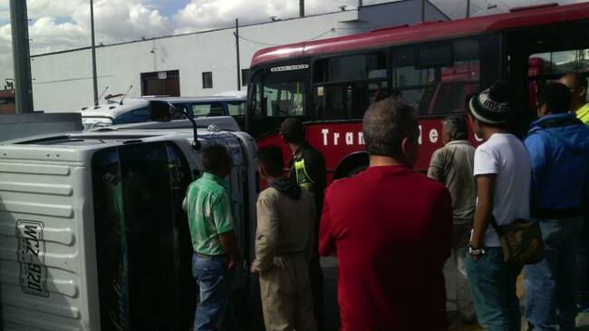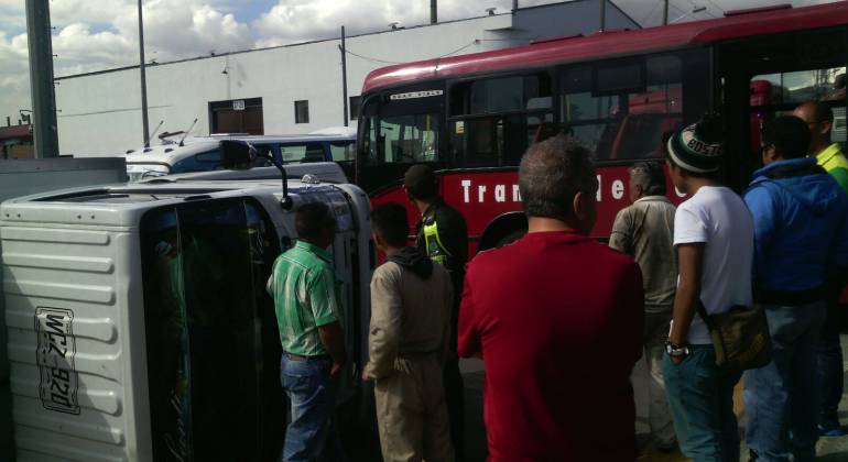 Los bomberos de Bogotá confirmaron que un furgón se volcó al chocar con un articulado de Transmilenio, dejando 5 personas heridas, que se encuentran con un estado de salud estable.