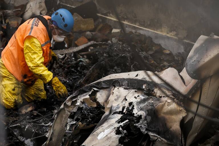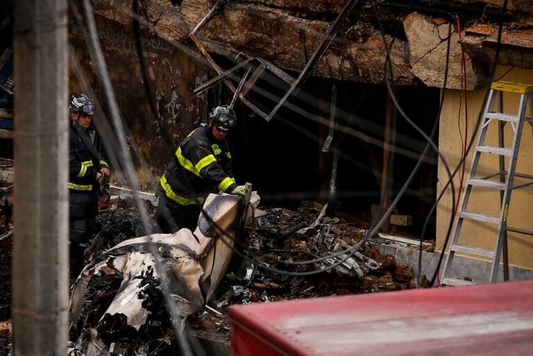 Remoción de escombros de avioneta accidentada en el barrio Villa Luz