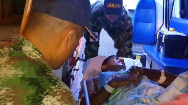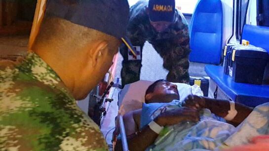 De inmediato lo trasladaron a bordo de una unidad de Infantería de Marina, donde le prestaron los primeros auxilios con el enfermero de combate y lo llevaron hasta el centro de salud Juan Bautista Luna del municipio de Riosucio. Pero debido a la gravedad de sus heridas fue trasladado por cuatro horas en lancha hasta Turbo, donde fue intervenido quirúrgicamente.