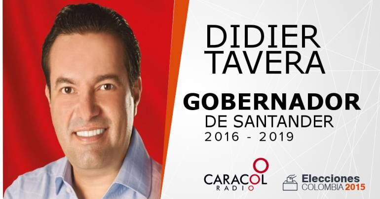 Didier Tavera candidato del partido Liberal se consolida nuevo gobernador de Santander, con un 31.67%, reflejando 282.932 votos frente a sus opositores Pedro Leónidas Gómez con 2.07.539 votos, Holger Horacio Díaz Hernández representante del partido de La U con 191.063 votos, Carlos Fernando de Jesús Sánchez Aguirre del partido político Santander en Serio con 162.951 votos y 2.629 votos para el Centro Democrático que revoco su candidato.