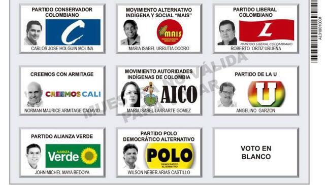 Los siguientes son los candidatos, por orden en el tarjetón, para la Alcaldía de Cali: