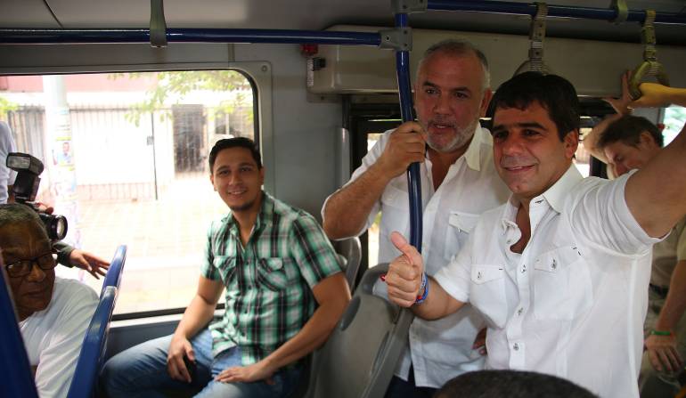 El electo alcalde de Barranquilla viajó en un bus de Transmetro y habló con la gente de tú a tú