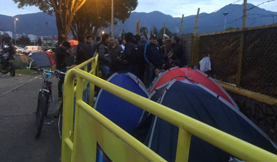 Los fanáticos llegaron con carpas y cobijas para pasar la noche y algunos ya casi completarán 24 horas esperando para adquirir su entrada para el tercer partido de Colombia en las eliminatorias para el mundial de Rusia 2018.
