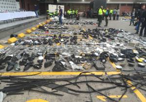 "Este es el segundo eslabón de la cadena, el primero es el delincuente que roba en la calle, acá estas personas analizan el estado del objeto robado y pagan una suma de dinero, la tercera fase es reparar el elemento robado y exhibirlo en la vitrina", manifestó el comandante de la Policía de Bogotá, general Humberto Guatibonza.