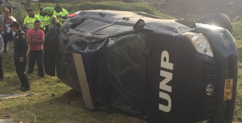 Los ocupantes quienes se encontraban haciendo acompañamiento al esquema de seguridad del vicepresidente Germán Vargas Lleras salieron ilesos pese al volcamiento que sufrió el automotor.