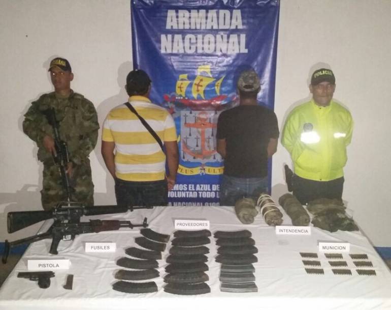 En el marco de las operaciones fluviales adelantadas por la Armada Nacional en coordinación con la SIJIN de Santander, en las últimas horas se sometieron a la justicia dos sujetos conocidos con los alias “Mocho” y “El Gordo” en zona rural del municipio San Pablo, Bolívar.