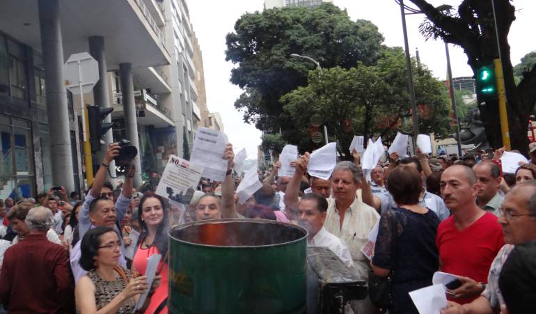 Indignados por la valorización quemaron facturas en la Plaza de Bolívar de Pereira