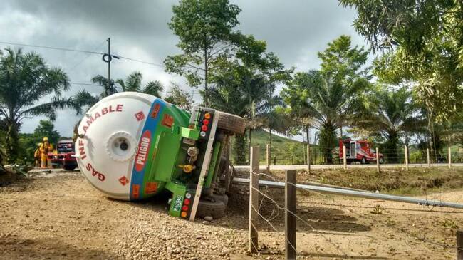 En la Lizama ocurrió un accidente de tránsito entre un tractocamión tipo cisterna y una volqueta.