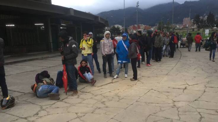 La fila de hinchas le da toda la vuelta al Coliseo el Campin y hay un permanente acompañamiento de las autoridades; las boletas para el partido están desde 40.000 hasta 250.000 pesos.