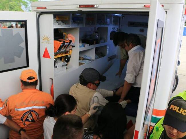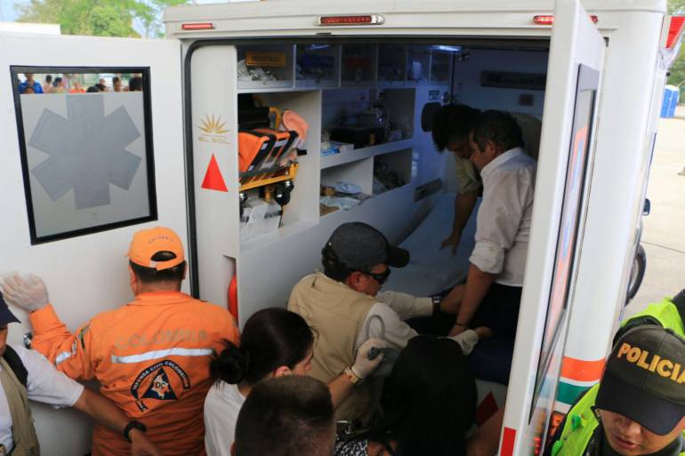 Segundos después el señor Vargas Lleras cae y es atendido por varias personas, entre ellas una médica que se encontraba en el lugar.