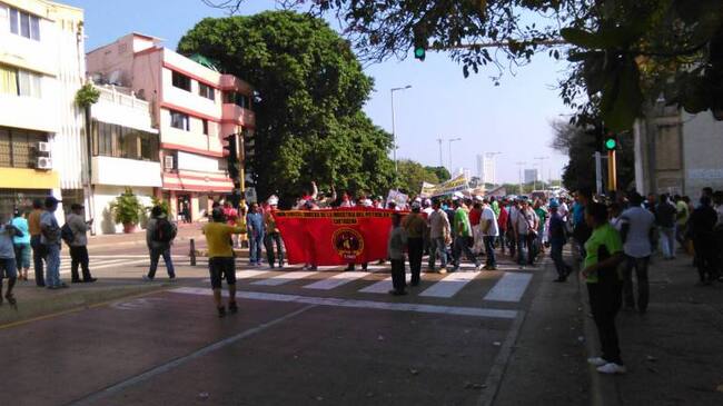 Fue bloqueado el carril de solo bus de Transcaribe en Cartagena por parte de trabajadores de Reficar que aseguran fueron despedidos injustamente.