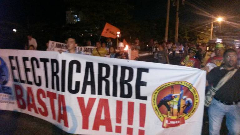 Fueron cerca de 600 personas quienes con antorcha en mano marcharon anoche con la consigna que Electricaribe se vaya de la Costa Caribe. La protesta fue convocada por sindicatos y organizaciones sociales como el 'Congreso de los pueblos' y la 'Marcha Patriótica', pero se unieron sectores del comercio del Centro Histórico que últimamente viene siendo afectado por repetidos cortes de energía.