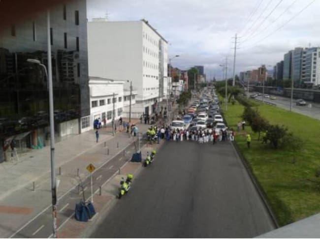Más de 100 personas bloquean a esta hora la calzada mixta y el carril exclusivo de TransMilenio, en la Autopista Norte con calle94 sentido norte – sur. Se registra alto flujo vehicular. Se recomienda utilizar vías alternas como la calle 100, la carrera 7 y la carrera 11.