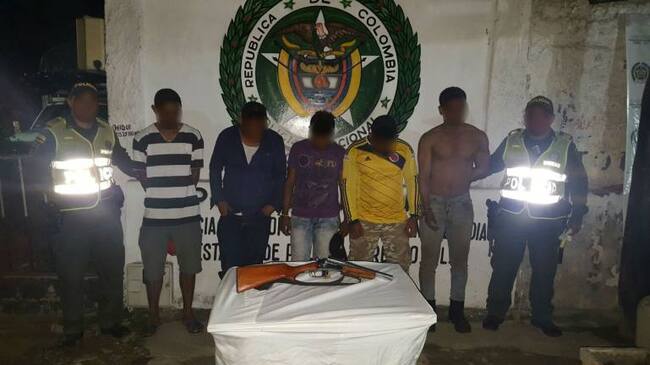 Los efectivos de la Policía Nacional realizaron la captura tras una llamada de denuncia de un ciudadano. En el operativo, en el municipio de Turbaco, fueron capturados los cinco integrantes de esta banda. Alias ‘Deivis’, de 38 años; alias ‘Isa’, de 23; alias ‘Jaider’, de 21; alias ‘Raa’, de 42 años, y alias ‘Alfre’, de 26 años de edad.