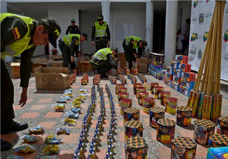 Según la Secretaría de Seguridad en un operativo ejecutado en la calle 51 con carrera 73 del barrio Los Colores, fue posible hacer la incautación del material pirotécnico, después de una llamada hecha por la comunidad a la línea de emergencias 1, 2,3.