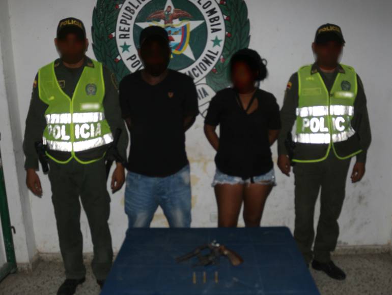 Los efectivos arribaron al lugar, e identificaron a la mujer, que estaba en estado de embarazo. La mujer y un acompañante fueron requisados, y se le encontró a ella un revólver calibre 38 oculto en la faja que tenía para disimular su embarazo.