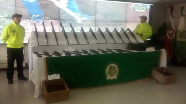 Las autoridades hallaron en la vereda La Atarraya en La Dorada, sector que conduce hacia el municipio de San Miguel, Antioquia, tres caletas con material de guerra. Se trata de 12 fusiles AK-47, 19 proveedores, 5 mil 322 cartuchos 7.62 y 3 chalecos arnés.