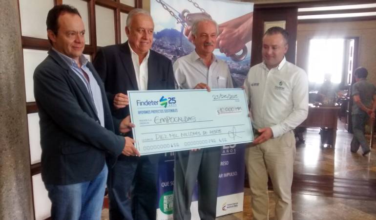 Con la entrega simbólica de un cheque por 10 mil millones de pesos por parte de Findeter, se podrá continuar con los proyectos de mejoramiento de acueducto y alcantarillado, iniciativa ejecutada por Empocaldas, en los municipios de La Dorada, Chinchiná, Anserma, Filadelfia, San José Risaralda y Riosucio.