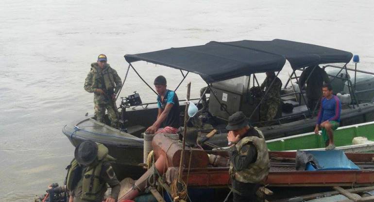 Todo ocurrió en el río Cauca, cerca al municipio de Caucasia (Antioquía), donde tropas del Batallón Fluvial de Infantería de Marina No 17, hallaron en flagrancia a los implicados que realizaban actividades de minería ilegal. En el lugar se incautaron dos motores tipo motobomba y dos dragas artesanales.