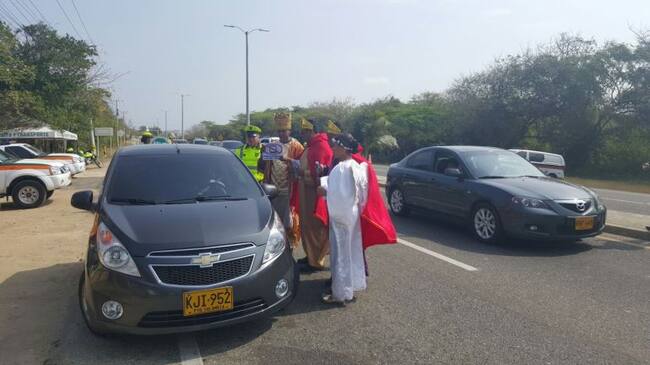 Con policías vestidos de Reyes Magos y el Ángel Guardián, las autoridades del Atlántico concientizan en las principales vías del Departamento a los viajeros para que respecten las normas de tránsito con el fin de evitar accidentes durante la operación retorno de “Los Reyes Magos”.